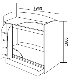 2 спальных места 800×1900, выкатной ящик, шкаф для платья и белья. Конструктивно позволяет установить любой стандартный (и ортопедический) матрац.Собирается на любую сторону.