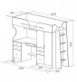 Шкаф состоит из трех отделений: платяного для верхней одежды, секции с полками и выдвижных ящиков (комода). Компьютерный стол укомплектован выдвижной полкой для клавиатуры, большой тумбой с выдвижными ящиками и книжной полкой. Кровать имеет боковые бортики и декоративный рейлинг. Лестница выполнена с надежными металлическими ступенями.